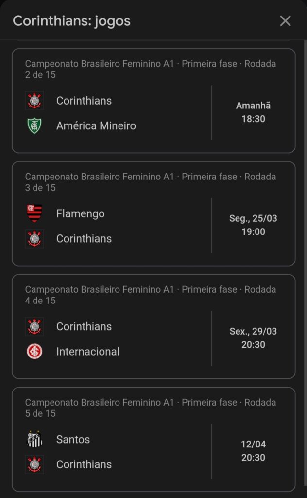 Próximos Jogos do Corinthians Feminino